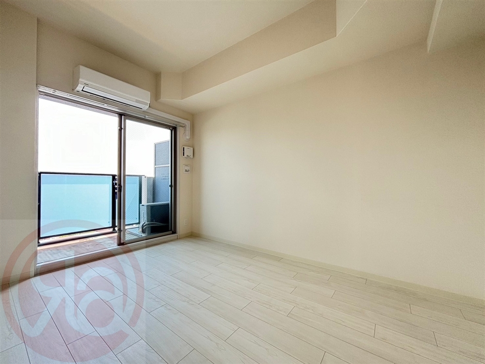 7畳の洋室は、シンプルながら家具のレイアウトがしやすい長方形の間取りで、白基調のお部屋なので、どんな家具とも相性が良いです。高層階角部屋ならではの開放感があり、東向きの窓からは毎朝しっかりと自然光が差し込みます。朝日を浴びて気持ちよく一日を始められる空間は、在宅ワークにもリラックスタイムにも最適です。