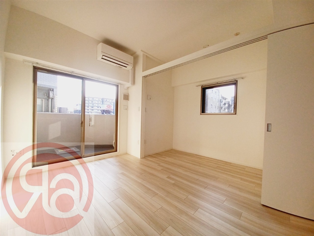 LDKは角部屋ならではの開放感があり、自然と居心地の良い雰囲気を演出します。コンパクトながら家具の配置がしやすく、ダイニングセットやソファも無理なく置けるサイズ感です。南向きのバルコニーからは心地よい日差しが入り、日中は照明をつけなくても快適に過ごせるので、省エネ効果も期待できます。LDK横にある洋室は引き戸で仕切ることができ、プライベートな空間として利用可能です。寝室としてはもちろん、ワークスペースや趣味部屋、小さな書斎としても活用できる便利な間取りです。