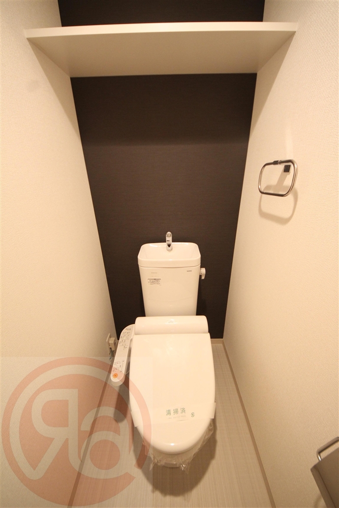 トイレは、温水洗浄便座付きで機能性も高く、清潔感のある快適な空間に仕上がっています。シンプルでありながらも生活に欠かせない設備がしっかり整っており、来客時にも安心です。ブラウンのアクセントウォールが落ち着いた雰囲気で日常のちょっとした時間も快適に過ごせます。