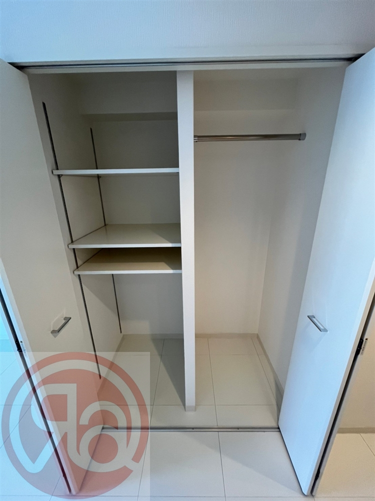 洋室に設置されたクローゼットは扉を開けると、片側にはハンガーラック、もう片側には高さを調節できる可動棚が設けられています。衣類を掛けるスペースと小物を整理できる棚がバランス良く配置されており、使い勝手も抜群。奥行きもしっかりとあるので季節の服や生活用品をすっきりとまとめられ、限られた空間を最大限に活かせる収納設計です。