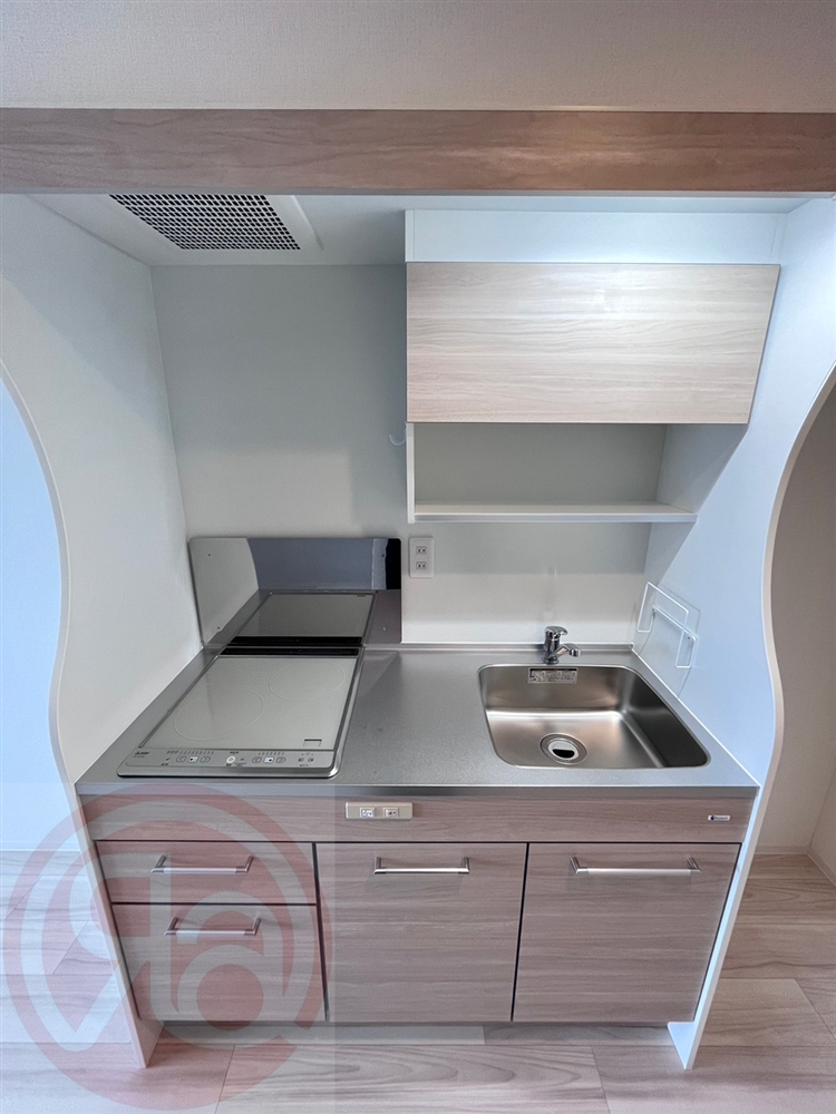 キッチンは、2口IHコンロを備えた使いやすい設計。火力調整も簡単で、毎日の調理がスムーズに行えます。引き出し収納も完備しており、調理器具やカトラリー、調味料などをすっきり整理可能です。コンパクトながらも機能性に優れたキッチンで、自炊派の方にも安心です。清潔感のあるデザインで、DK空間と調和し、毎日の料理時間を快適にしてくれます。