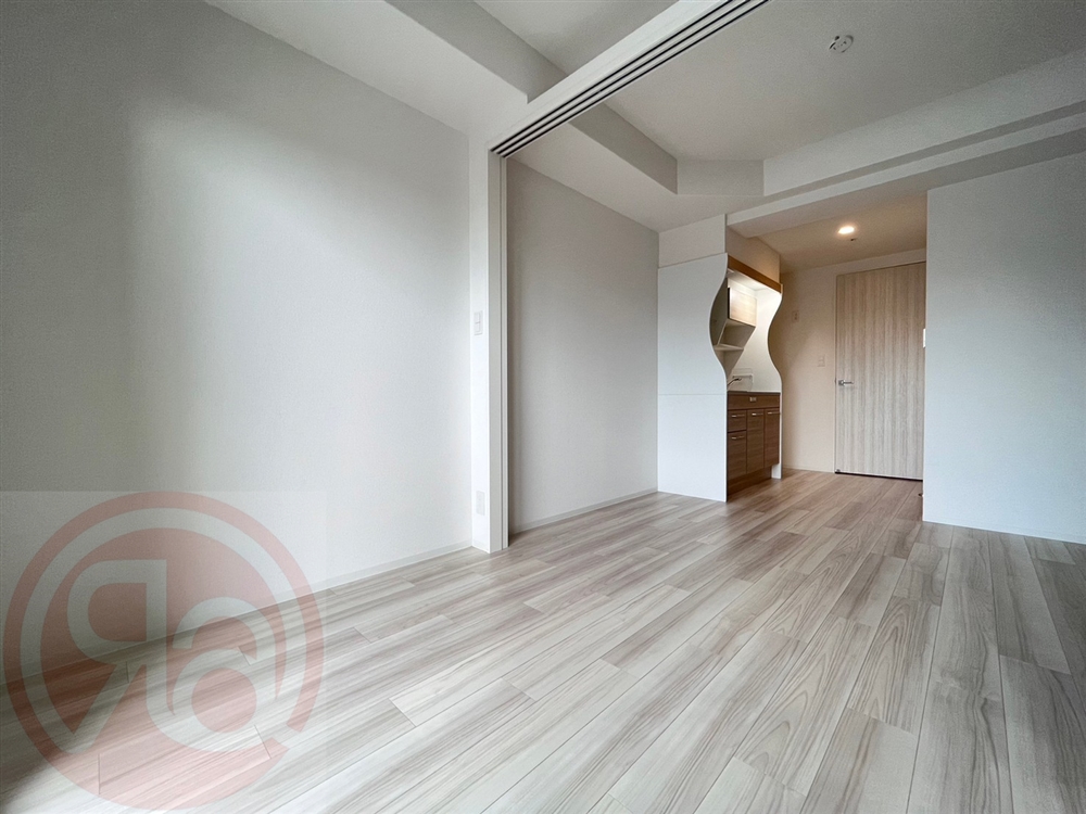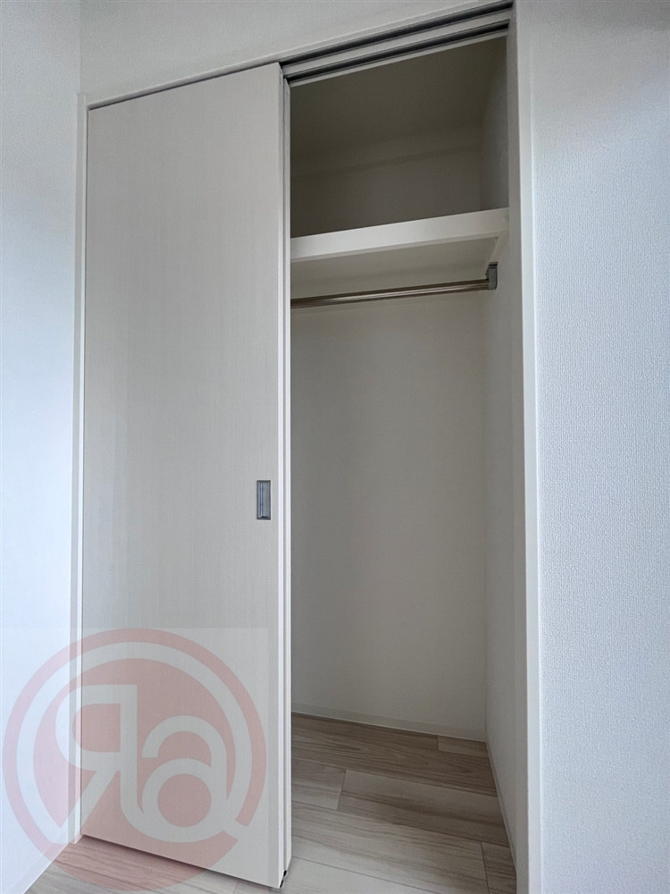 洋室には引き戸タイプのクローゼットが設けられており、スペースを有効活用できます。ハンガーラック付きなので衣類の整理がスムーズで、季節ごとの服や荷物も効率よく収納可能。引き戸タイプのため、扉の開閉に場所を取らず、洋室のレイアウトも自由にアレンジできます。DK側にも収納棚があり、生活用品や小物をまとめて置けるのが便利です。