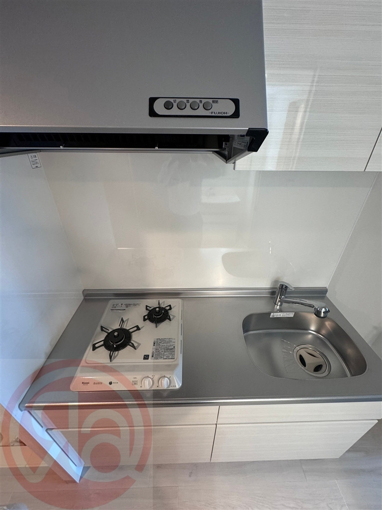 キッチンはコンパクトながら使い勝手を重視した設計で、2口ガスコンロを完備。調理スペースも確保されており、自炊派の方にも嬉しい環境です。上下に収納スペースがあり、食器や調理器具を整理しやすく、作業効率が上がります。キッチン周りはお掃除も簡単で、常に清潔な状態を保てます。