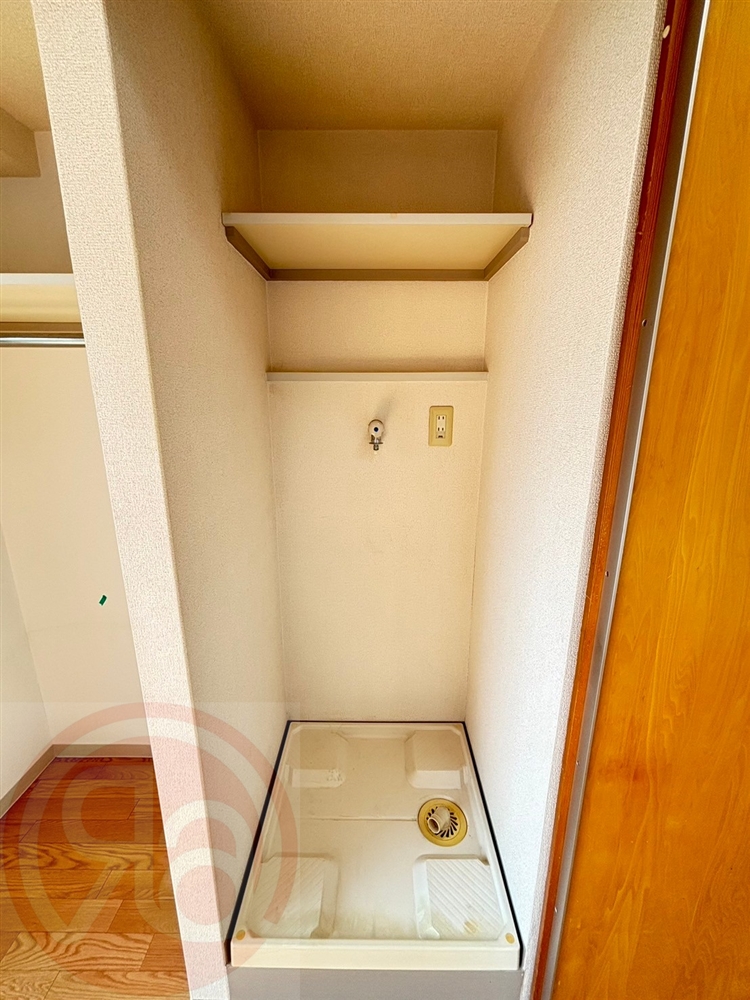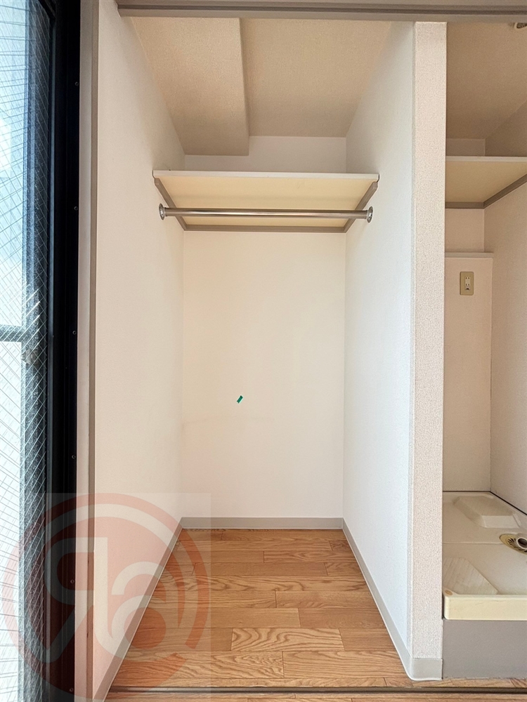 洋室内には、使い勝手の良い室内洗濯機置き場を完備。ブラウンの引き戸でしっかりと隠されており、生活感を感じさせないすっきりとした空間が保てます。バルコニーが近いので、洗濯から干す作業も簡単で家事動線もスムーズです◎お部屋全体の統一感を損なわず、快適な一人暮らしをサポートしてくれます。