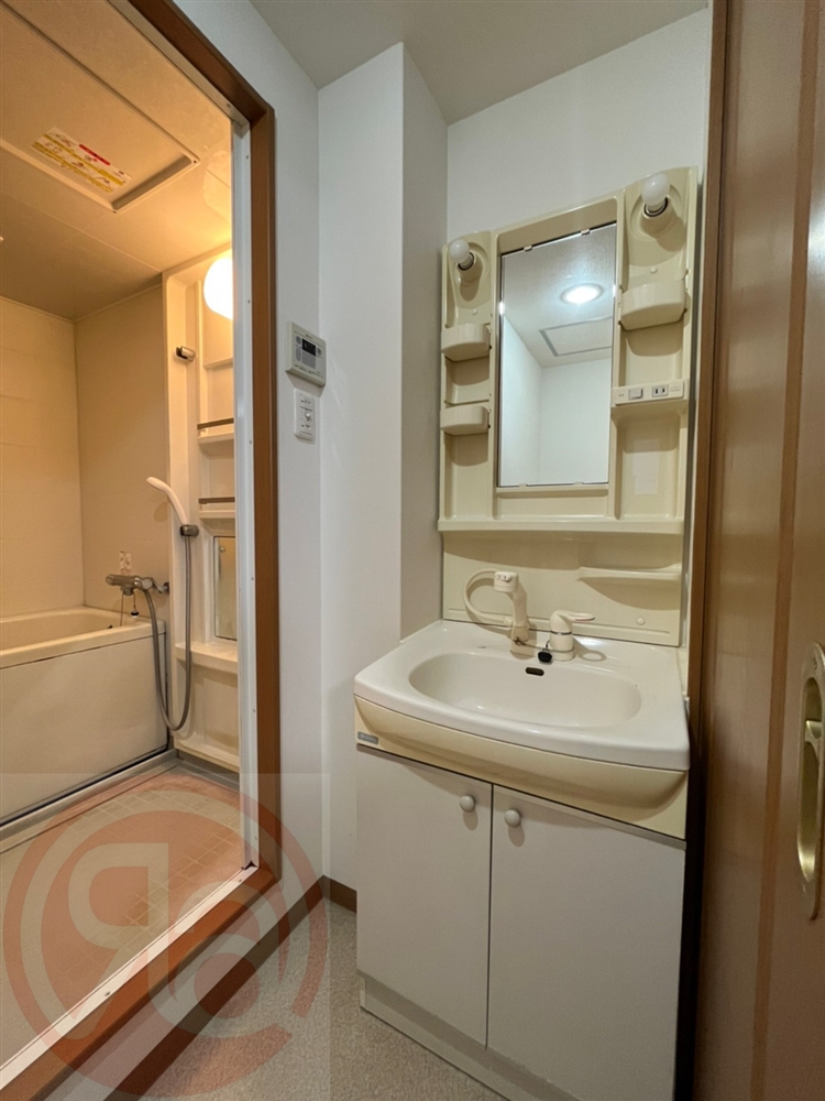 脱衣室には独立洗面台を完備されているので、朝の身支度や帰宅後の手洗い、夜のスキンケアタイムまで、使い勝手がよくストレスのない設計です。脱衣室がしっかりと区切られているので、来客時のプライバシーもしっかりと確保できます。