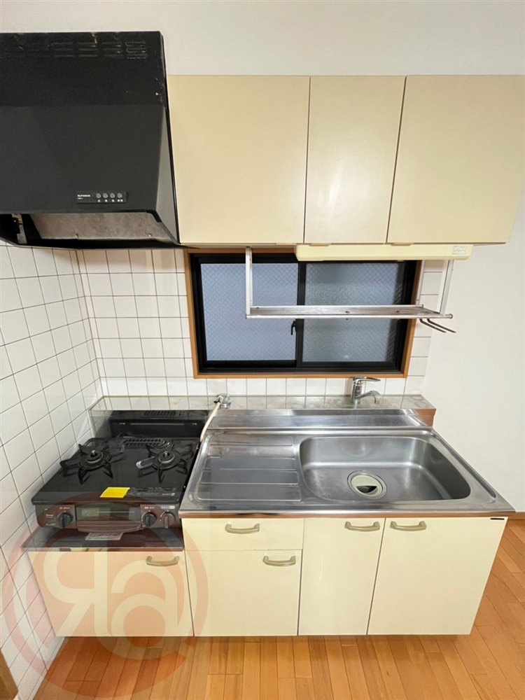 後付けの2口ガスコンロが設置されたキッチンは、使い勝手の良さが魅力。コンパクトながらも調理スペースをしっかり確保しており、毎日の自炊にも十分対応できます。コンロ前には小窓があり、換気や明るさを確保しながら心地よく調理できるのもポイント。朝の光が差し込む時間帯には自然な明るさの中で料理を楽しめ、気分もリフレッシュできます。小窓を開ければ湯気やにおいもすぐ外へ抜けるため、清潔な空間を保ちやすく、快適にキッチン時間を過ごせます。