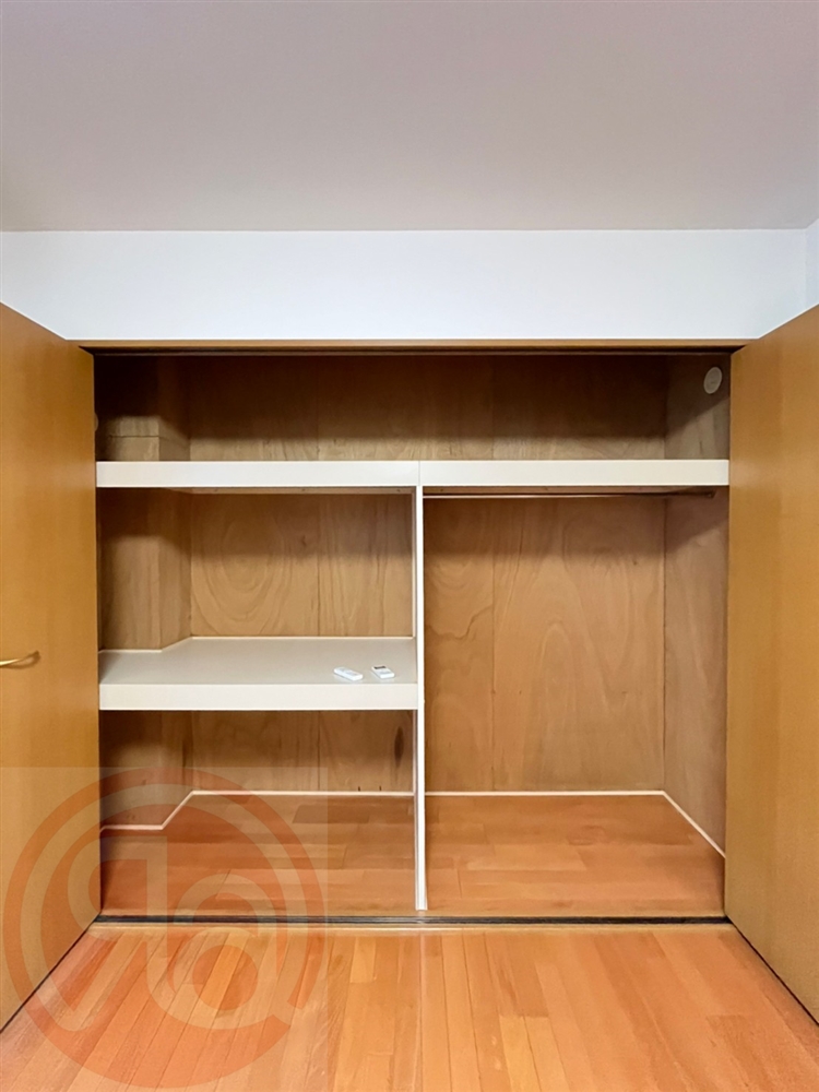 洋室には大容量の壁面収納が備え付けられており、生活の幅を広げる工夫が満載です。収納扉を開けると、半分は伝統的な押し入れタイプで、布団や季節家電などかさばる物もすっきり収納可能。もう半分はハンガーラック付きのクローゼットタイプになっており、洋服やコートを掛けて整理整頓できます。二つの収納スタイルを併せ持つことで、洋室内のスペースを有効活用しながら、日常の整理整頓もスムーズに行えます。同棲や二人暮らしでも、衣類や荷物を分けて収納できる点が魅力です。