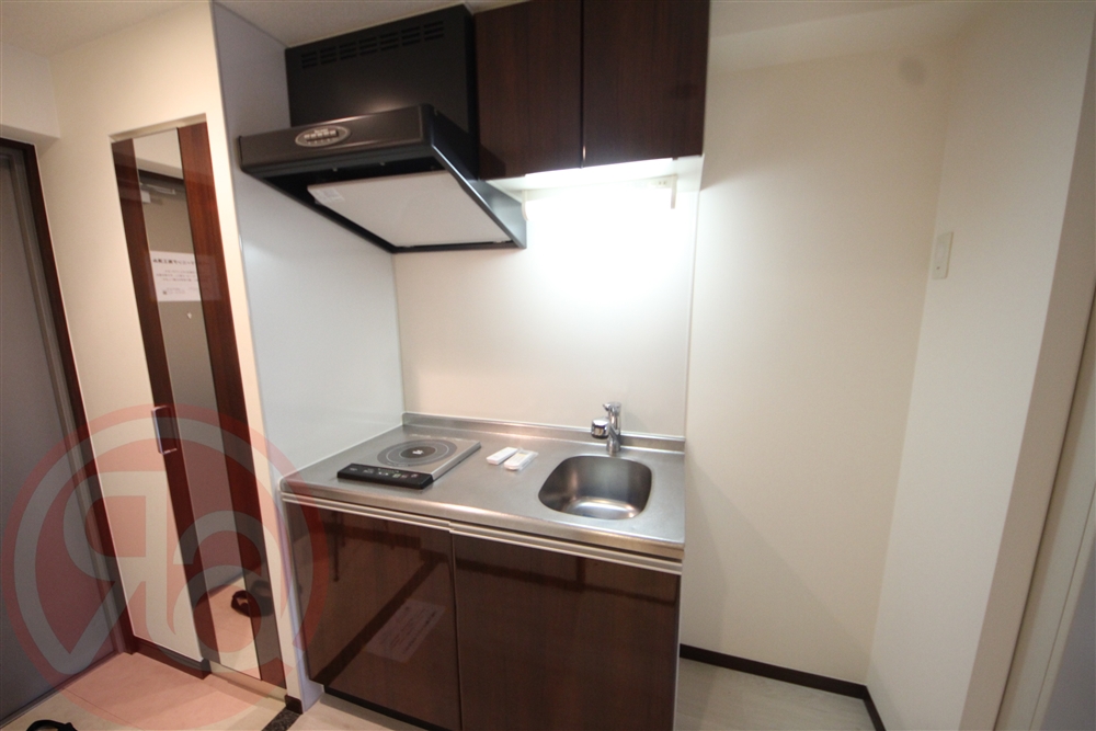 1口IHコンロを備えたキッチンは、単身の方が日常的に使うにはちょうど良いサイズ感で、見た目以上に扱いやすい仕様です。IHならではの掃除のしやすさもあり、忙しい平日でもサッと拭くだけで清潔さをキープできます。また、コンパクトさの中にも調理スペースがしっかり確保されているため、簡単な自炊はもちろん、野菜を切ったり、お弁当を作ったりといった作業もスムーズ。キッチン全体は落ち着いたブラウンを基調としており、温かみのある雰囲気が単身のお部屋とよく調和し、生活感を抑えつつも、毎日の料理時間が少し楽しくなるような、バランスの取れたキッチンスペースです◎