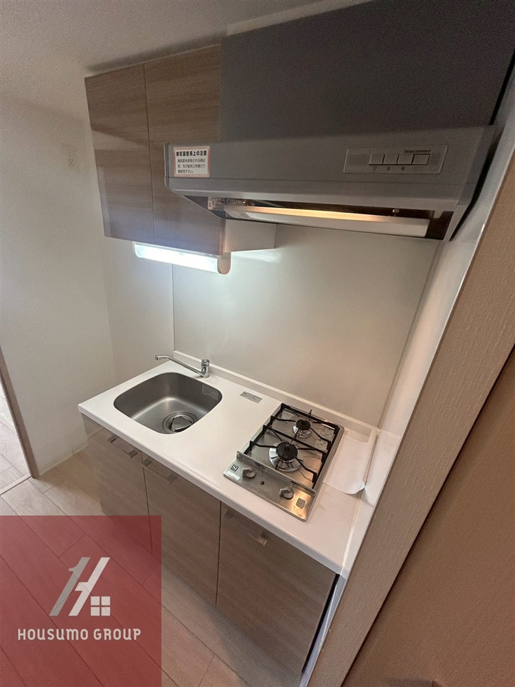 キッチンはコンパクトながら使い勝手を重視した設計で、縦型2口ガスコンロを完備。調理スペースも確保されており、同時調理が可能なので、自炊派の方にも嬉しい環境です。上下に収納スペースがあり、食器や調理器具を整理しやすく、作業効率が上がります。忙しい転勤者の方でも、シンプルな動線でスムーズに料理ができる工夫が施されています◎