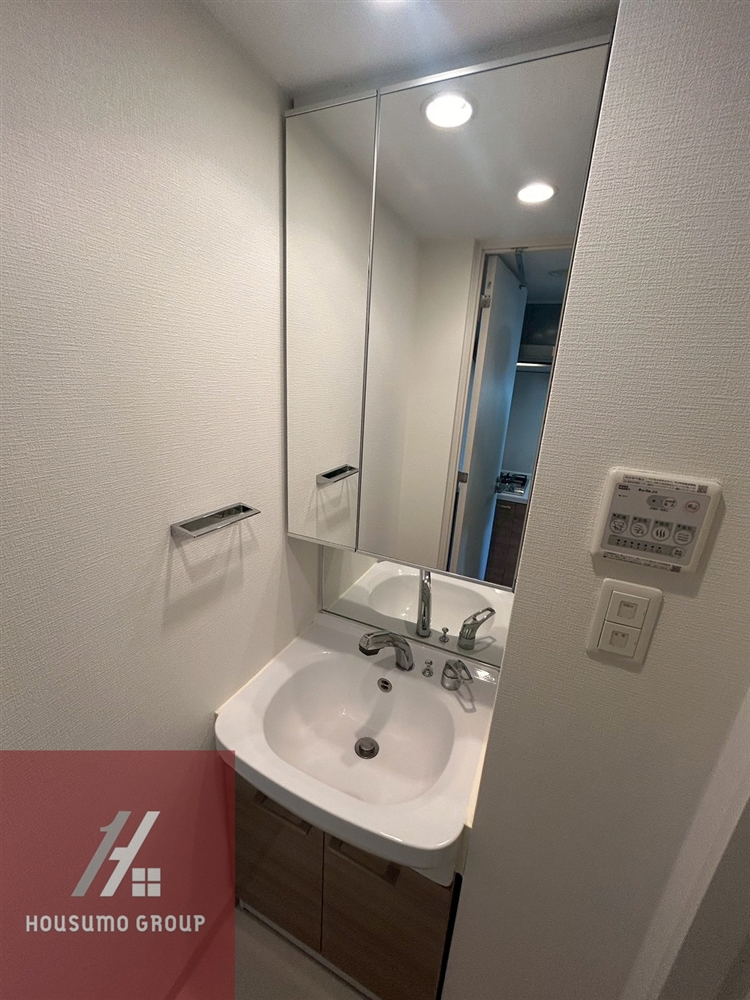 脱衣室には独立洗面台が設けられており、朝の支度や帰宅後の身だしなみを整える時間が快適になります。鏡裏収納がしっかり確保されているため、スキンケア用品やヘアセット道具、日常的に使う小物類をすっきりと隠して置けます。洗面台周りに物が出っぱなしにならないので、毎日使う場所なのに自然と清潔感がキープできる点が魅力。生活感を抑えつつ“自分のための身支度スペース”をつくりたい方にぴったりの仕様です◎