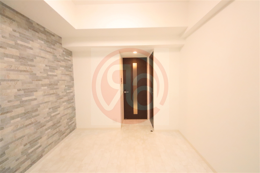 6畳の洋室は、家具が置きやすい長方形で、白基調とおしゃれなアクセントウォールが実際の数字以上に広く感じられる造りです。南向きの窓から射し込む光で、昼間は照明なしでも過ごせる明るさです。ワンちゃんとの暮らしでもストレスなく使えるフローリングで、ソファやデスクを配置してもしっかり動線が確保できるのもポイントで、毎日の生活が整いやすい、程よい“ちょうど良さ”があります◎