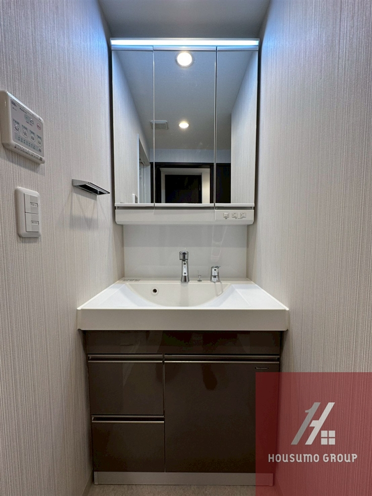 バスルームには浴室乾燥機能を搭載しており、天候や時間帯を気にせず洗濯物を乾かせるのが大きな魅力。花粉や黄砂の季節、帰宅が遅くなりがちな日でも室内干しができ、日々の家事負担を軽減してくれます。室内には全身鏡が設置されており、立ったままでも全身のバランスを確認しやすく、シャワー時や身支度の際にも便利。築浅物件らしい清潔感のあるバスルームで、機能性と快適さを兼ね備えた、毎日気持ちよく使える水まわり空間です◎