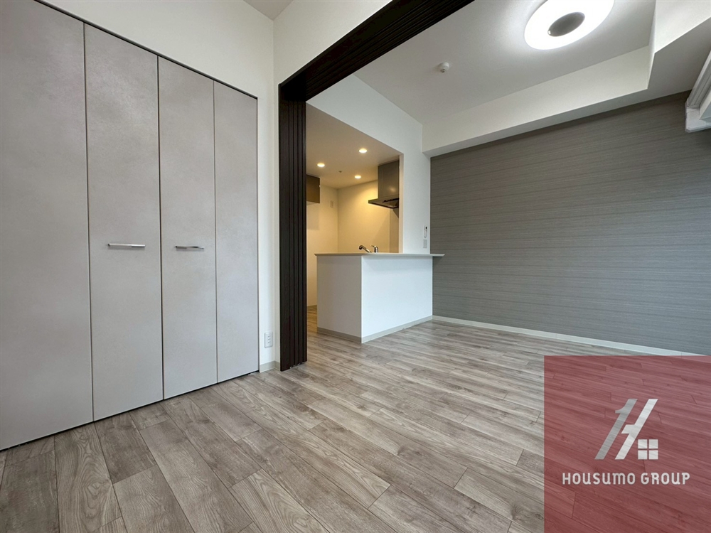 LDKは8畳の広さがあり、コンパクトながらも“暮らしのバランス”が取りやすい空間設計。北向きのお部屋は直射日光が入りにくいため、日中も室内の明るさが安定し、家具やフローリングの日焼けを気にせずレイアウトを楽しめます。ダイニングとリビングを分けて使うこともでき、食事・くつろぎ・在宅ワークなど、生活シーンに合わせた使い分けが可能。LDK横の洋室は引き戸で仕切れる設計のため、空間の使い方に柔軟性があり窓際のテーブルは在宅でテレワークをするのにもぴったりです。築浅ならではのすっきりとした内装が、空間全体をより広く感じさせてくれます◎