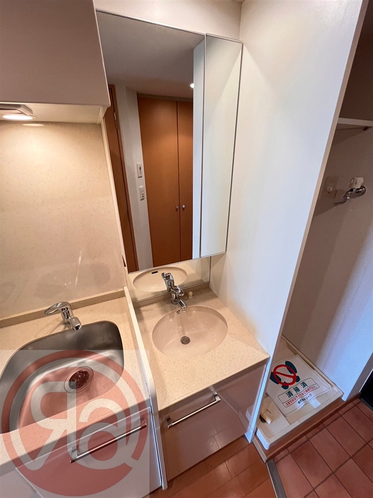 独立した脱衣室はありませんが、キッチン横に独立洗面台と洗濯機置き場が横並びで配置されています。生活動線を意識したレイアウトのため、洗顔・身支度・洗濯といった日常動作が一か所で完結し、無駄な移動が少ないのが特徴です。洗面台は玄関や居室から程よく距離があり、来客時でもプライベート感を保ちやすい配置。限られた空間を有効活用しながらも、生活感が出すぎない点は一人暮らしに嬉しいポイントです。