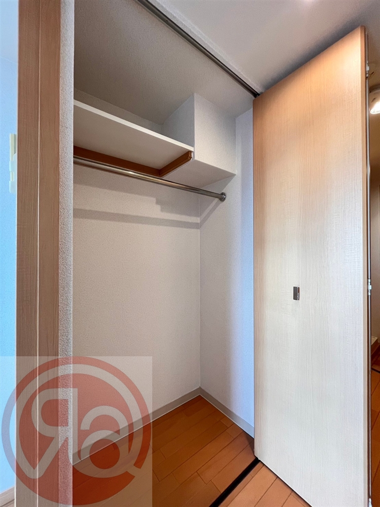 収納スペースは洋室内ではなく、キッチン横に配置されているのが特徴です。生活動線上にあるため、帰宅後すぐに荷物を片付けたり、日用品やストック品をまとめて収納したりと、使い勝手の良さを実感できます。居室側に収納がない分、洋室は家具配置の自由度が高く、ベッドやデスクをすっきりレイアウト可能。衣類はもちろん、掃除用具や生活小物まで整理しやすく、空間を無駄なく活用できる設計です。居住スペースを広く使いたい方にとって、嬉しいポイントです◎
