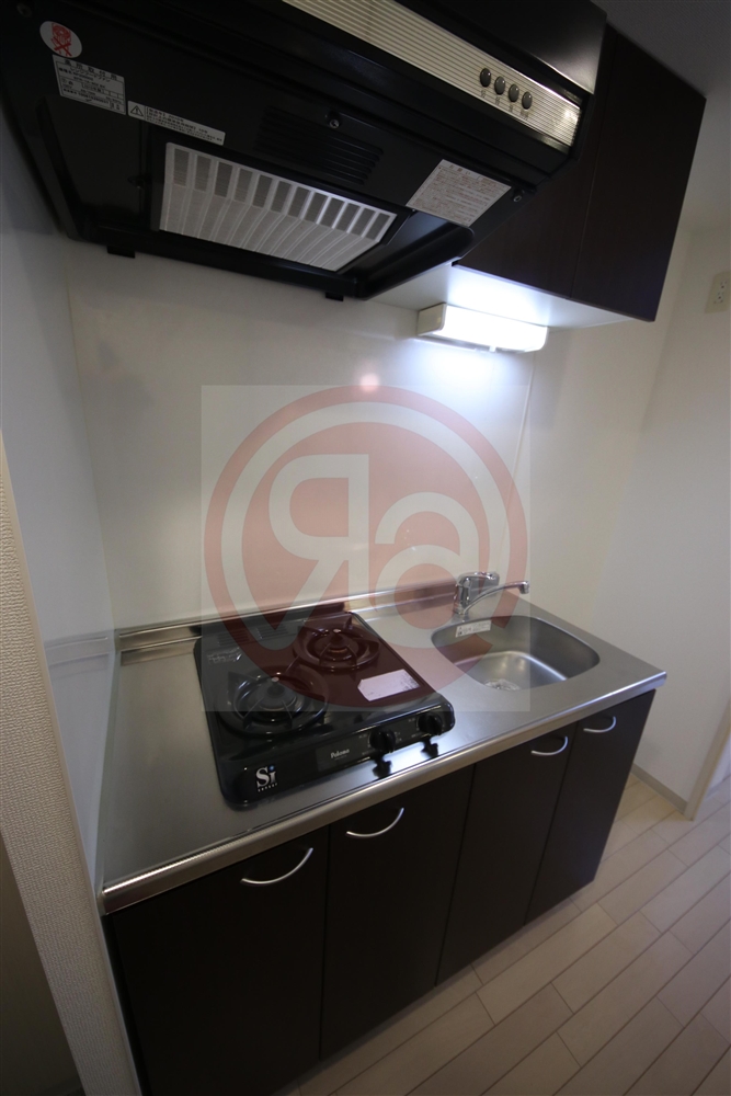 キッチンはコンパクトながら使い勝手を重視した設計で、2口ガスコンロを完備。調理スペースは最小限ですが、同時調理が可能なので、自炊派の方にも嬉しい環境です。上下に収納スペースがあり、食器や調理器具を整理しやすく、作業効率が上がります。忙しい社会人や学生の方でも、シンプルな動線でスムーズに料理ができる工夫が施されています。