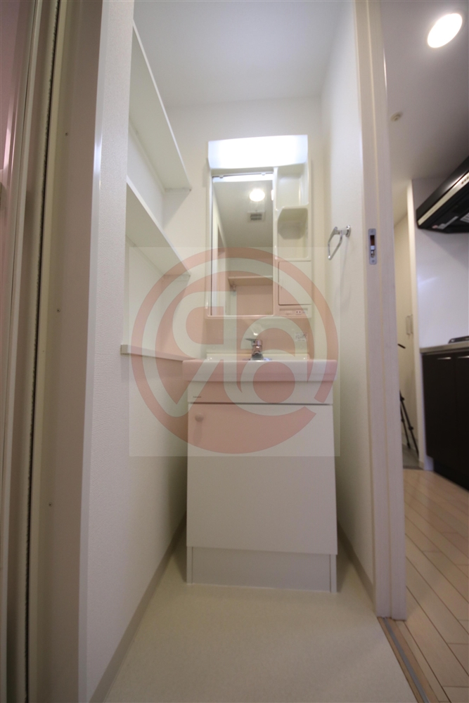 脱衣室には独立洗面台が設けられており、朝の支度や帰宅後の身だしなみを整える時間が快適に。鏡裏収納がしっかり確保されているため、スキンケア用品やヘアセット道具、日常的に使う小物類をすっきりと隠して置けます。洗面台周りに物が出っぱなしにならないので、毎日使う場所なのに自然と清潔感がキープできる点が魅力です。生活感を抑えつつ“自分のための身支度スペース”をつくりたい方にぴったりの仕様です◎