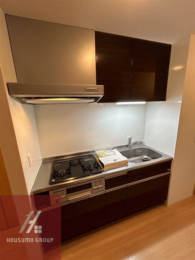 キッチンは3口ガスコンロを備えたシステムキッチン仕様で、同時調理ができ料理の効率も良好です。作業スペースもしっかり確保されており、自炊派の方にも満足いただける設計。収納力も高く、調理器具や食器をすっきり整理できるため、毎日の家事が快適にこなせます。調理中の動線もスムーズで、日々の料理がストレスなく行えます。機能性とデザイン性を兼ね備えたキッチンで、料理の時間がより楽しくなります。