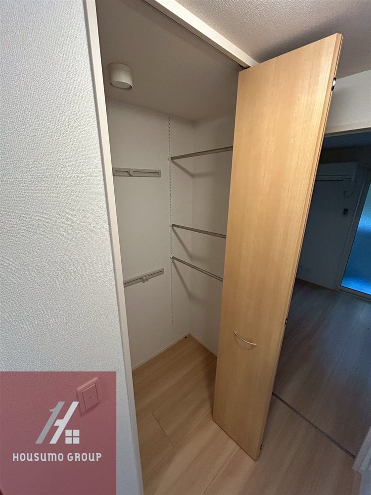ウォークインクローゼットを採用しており、衣類や荷物の出し入れがスムーズに行えます。ハンガーラッグ付きで、丈の長いコートやシャツ類はしわなくかけることができます。使用頻度に応じた整理がしやすいのもポイント。奥行きと収納力がしっかり確保されているため、季節物や大きな荷物も収納可能。居室スペースを圧迫せず、室内をすっきり保てるのも魅力です。