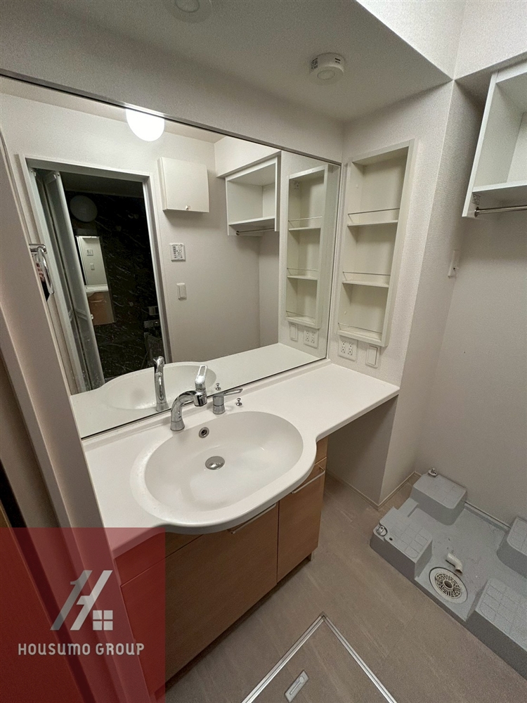 脱衣所には独立洗面台を設置しており、身支度やスキンケアが快適に行えます。洗髪洗面化粧台付きで、朝の準備もスムーズ。脱衣所には洗濯機置き場に加え、洗濯籠を置ける十分なスペースを確保。洗う・干す・片付けるまでの動線がスムーズで、毎日の家事効率がアップします。室内洗濯機置き場を備え、家事動線にも配慮された使い勝手の良い空間です。