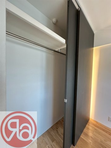 クローゼットを備えた収納スペースで、衣類や生活用品をすっきり整理できる設計です。全居室収納付きのため、室内に物があふれにくく、きれいな住空間を保ちやすい点が魅力です。ハンガーパイプ付きで、コートやシャツをシワなく収納可能です。奥行きも確保されており、季節家電やスーツケースの保管にも対応できます。日常の整理整頓をサポートする、実用性の高い収納環境です。