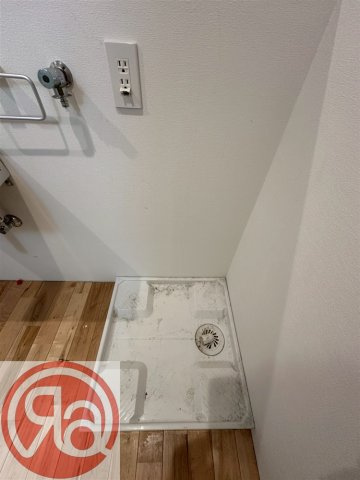 独立洗面台を備えた脱衣所で、身支度や洗面動作がスムーズに行える使い勝手の良い空間です。洗濯機置き場が室内にあり、家事動線も効率的に設計されています。洗面スペースと浴室が近く、入浴前後の動作がしやすい点も魅力です。収納スペースも確保されており、タオルや日用品をすっきり整理できます。生活感を抑えつつ、快適な水回り環境を整えた脱衣所です。
