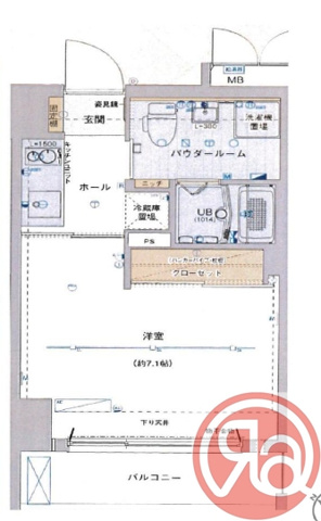 約7.1帖の洋室は、1Kマンションとしてはゆとりのある広さで、一人暮らしに快適な住空間を確保できます。長方形に近い間取りのため、ベッドやデスク、収納家具のレイアウトがしやすく、生活動線もスムーズです。バルコニーに面しているため採光性が高く、日当たりの良い明るい室内環境が期待できます。クローゼット付きで収納力もあり、室内をすっきり保ちやすい点も魅力です。寝室とくつろぎ空間を分けやすく、機能的で住み心地の良い洋室です。