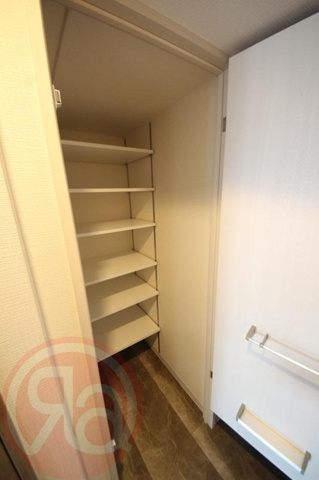 お部屋をすっきりと保つための、充実した収納スペースがこのお部屋の大きな自慢です。洋室には、衣類をハンガーに掛けたまま大量に収納でき、足元にはキャリーケースなどの大きな荷物も収まる広々としたウォークインクローゼットが完備されています。玄関には、靴だけでなく傘や日用品まで機能的に整理できる大型のシューズインクローゼットが備わっており、入り口から清潔感のある住空間を維持することが可能です。さらに、トイレや洗面台の上部など、デッドスペースになりがちな場所にも棚が設置されており、限られた空間を最大限に活用できる工夫が凝らされています。